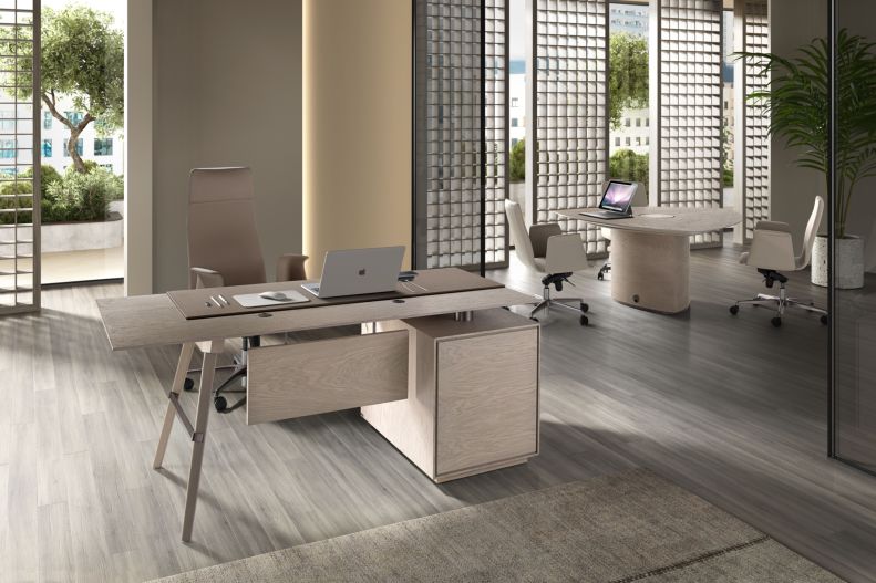 Un despacho contemporáneo definido por el equilibrio y la sofisticación. La colección Connect destaca por sus líneas puras, acabados refinados y detalles cuidadosamente pensados que aportan tanto funcionalidad como estilo. El acabado en Roble Arena añade un toque natural, mientras que la geometría moderna del diseño crea un entorno de trabajo armonioso e inspirador.