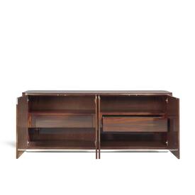 Con su aspecto elegante y refinado, la mesa de comedor Emerald crea un ambiente sofisticado e impecable. Una vez más, la fascinante mesa Emerald con su carácteristico diseño de chapa en forma de estrella, combinada con las sillas en tapicería de primera calidad y una credenza a juego, elaborada con las mejores chapas, inspira una atmósfera de opulencia y sofisticación. Se ofrece en varios tamaños, esta mesa se adapta perfectamente a cualquier comedor.