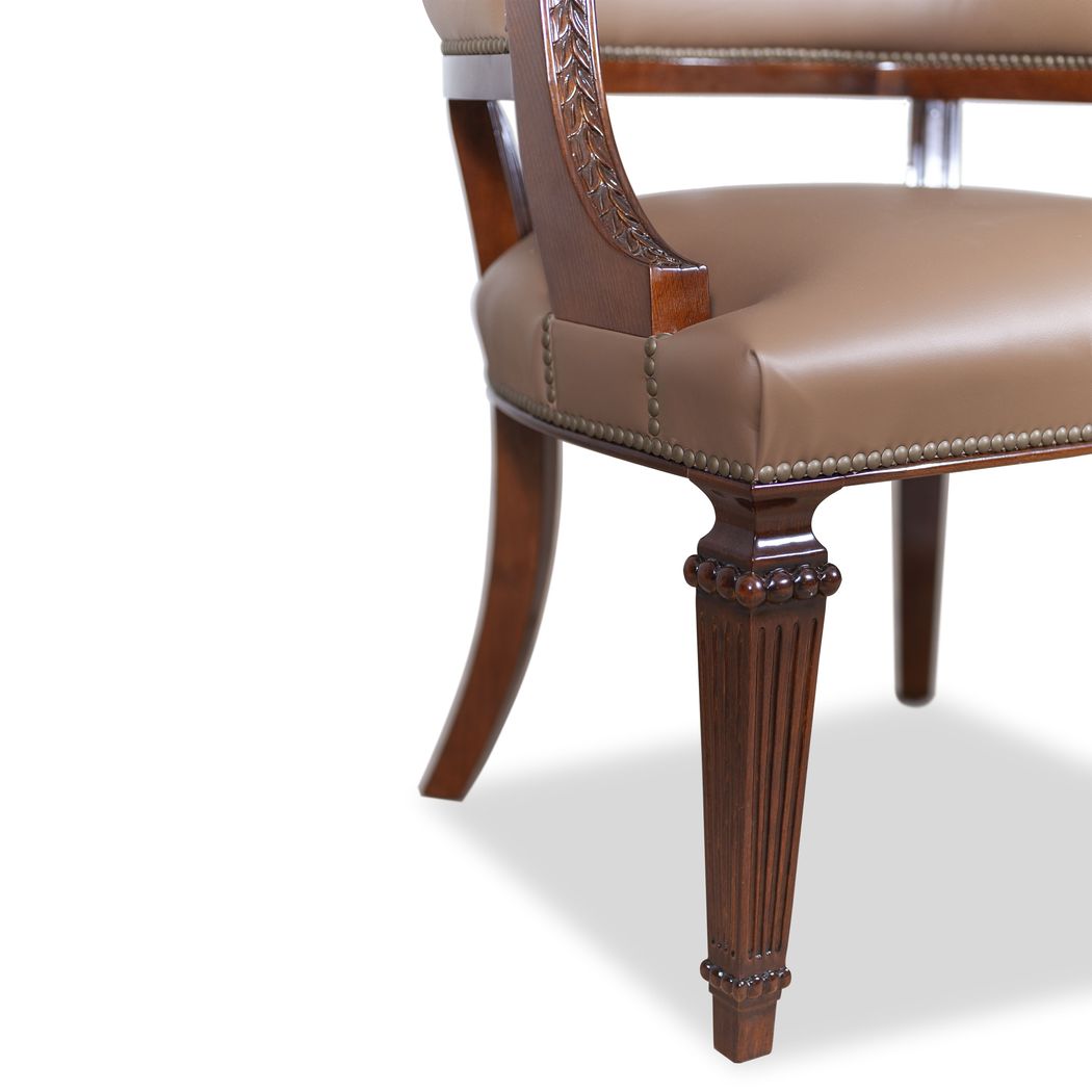 In the chairs collection, all our models are made of solid wood, some of them with metal structures and upholstered with rich fabrics. Both finishes and upholstery and leather can be modified.